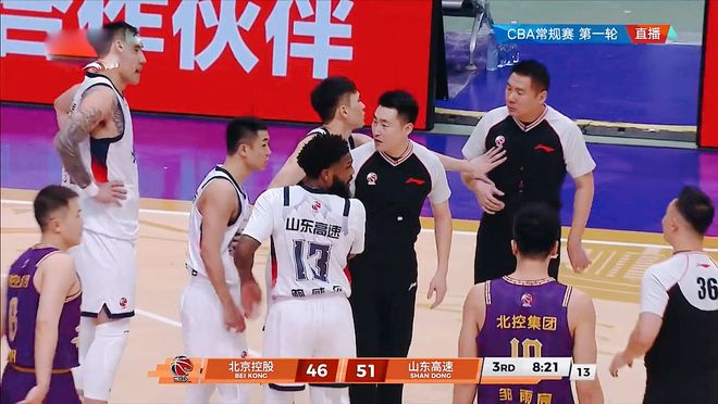 下半场回来,北控一个回合连抢4个进攻篮板!裁判短时间连吹山东男篮犯规,引发了队长高诗岩和主教练邱彪的强烈不满。陶汉林很快吃到三次犯规,不得不提前下场。珀塞尔挺身而出连得五分,杨帆连中远投。于德豪压哨三分命中,三节比赛战罢,山东男篮保持两分的优势。